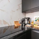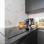 - ❓Une cuisine est-elle disponible au logement spacieux pour les clients ?Oui, le logement spacieux est équipé d'une cuisine complète et propose également un micro-ondes, une cafétière/théière électrique et un réfrigérateur.